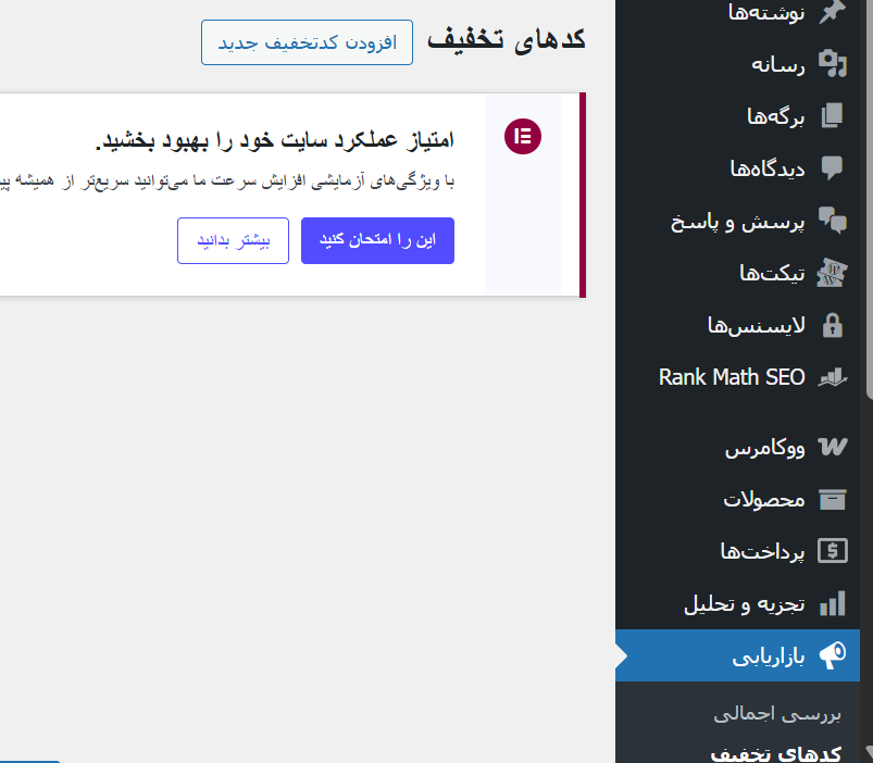 بررسی گزارشات: در بخش گزارشات ووکامرس میتوانید میزان استفاده و تاثیر کدهای تخفیف را مشاهده کنید.