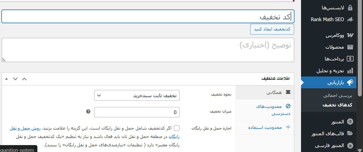 مرحله 3: تعریف کد تخفیف