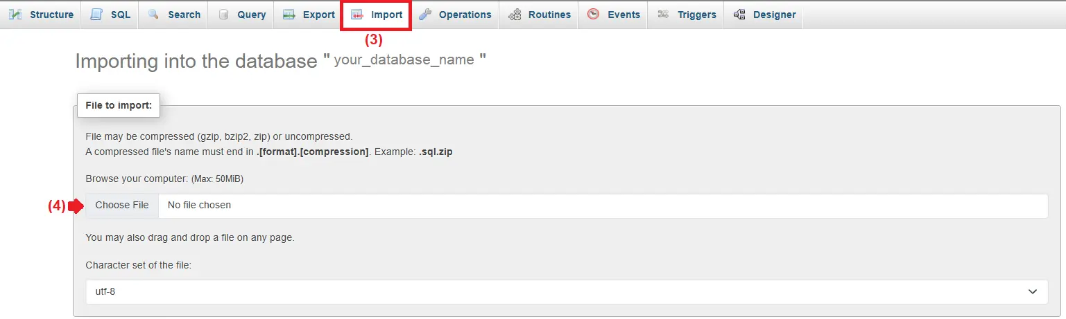 راهنمای گام به گام وارد کردن از طریق phpMyAdmin:
