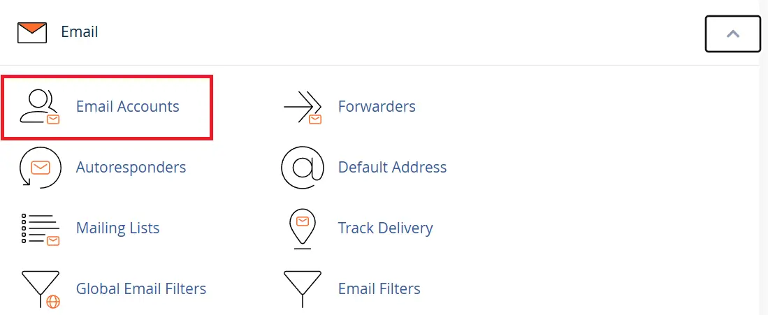پس از ورود به cPanel، با یک داشبورد شامل بخشهای مختلف مواجه میشوید. cPanel ممکن است با تمهای مختلفی (مثل Paper Lantern, Jupiter و…) نمایش داده شود، اما ساختار کلی یکسان است. بخش مربوط به ایمیل معمولاً با عنوان “EMAIL” یا “پست الکترونیک” مشخص شده است. در این بخش، به دنبال آیکون و لینکی با عنوان “Email Accounts” بگردید و روی آن کلیک کنید.